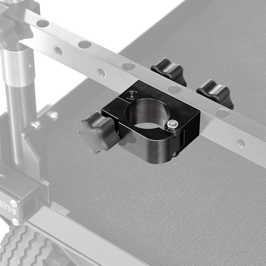 Accessory Cross Bar Clamp (1.75 in.) allows for easy attachment of a 1.75 in. clamp to any crossbar, providing support for 1.75 in. mast-based INOVATIV accessories like the Camera Mount System, Tripod System, Steadicam System, and Mast Riser System.