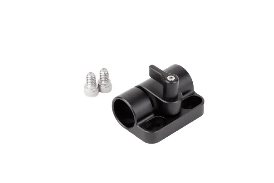 19mm Tube Clamp with slotted screw pattern allows attaching to holes between 25mm and 36mm apart center to center. Can be used with one of our AIR EVF Friction Knuckle and Rod Only to mount a RED®, ARRI, or Varicam EVF