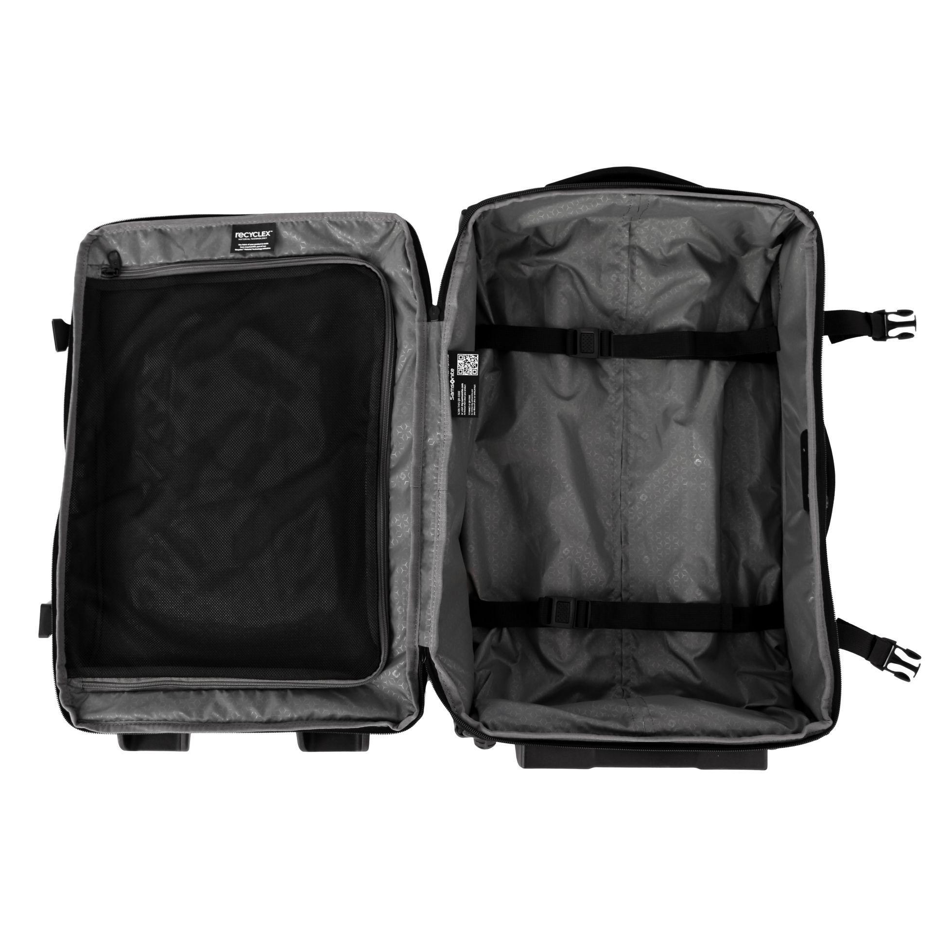 This wheeled suitcase is the perfect travel companion. It features a main compartment, a laptop compartment (15.6"), and a front pocket. There is enough space to store and organize the essentials and perfect for active and urban travelers. The suitcase is available in grey and black.
