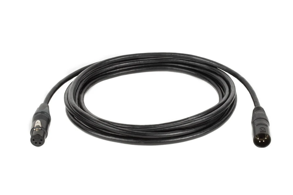 4 pin XLR male connector to 4 pin XLR female. Power rated connectors and cable. Ideal for use with block batteries and camera 4pin XLR adapter cables. Cable measures 10 feet (3 m).