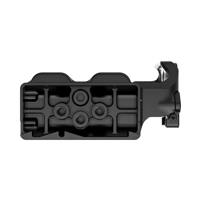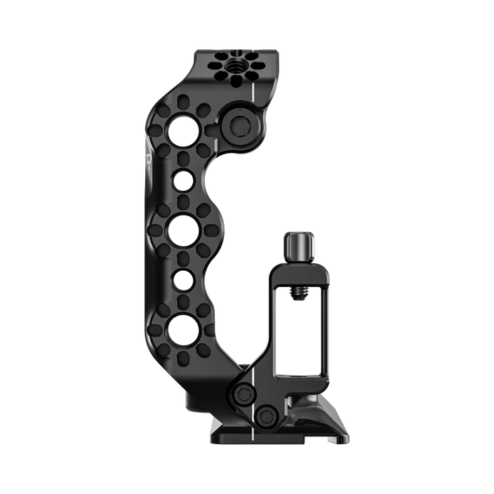 This bracket expands the cage system when paired with the Cage Grip and Top Plate for EOS C50, with dedicated mounting points for the Cage Grip. The dovetail design on the bottom of the bracket is compatible with Ronin-series gimbals and includes ¼”-20 mounting points for flexible attachment to other rigging setups.