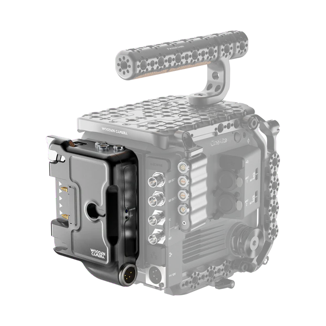 Add power accessory options on the Sony BURANO by adding the D-Box®* to your camera system, the D-Box provides additional 2-pin 12V - 5.8A (shared over all 12V outputs), a D-tap port and a 3-pin 24V - 3.8A (shared over all 24V outputs). The D-Box offers hot swap abilities when power is connected to the DC-In and an on-board battery. Choose from either a Gold Mount or V-Mount option.