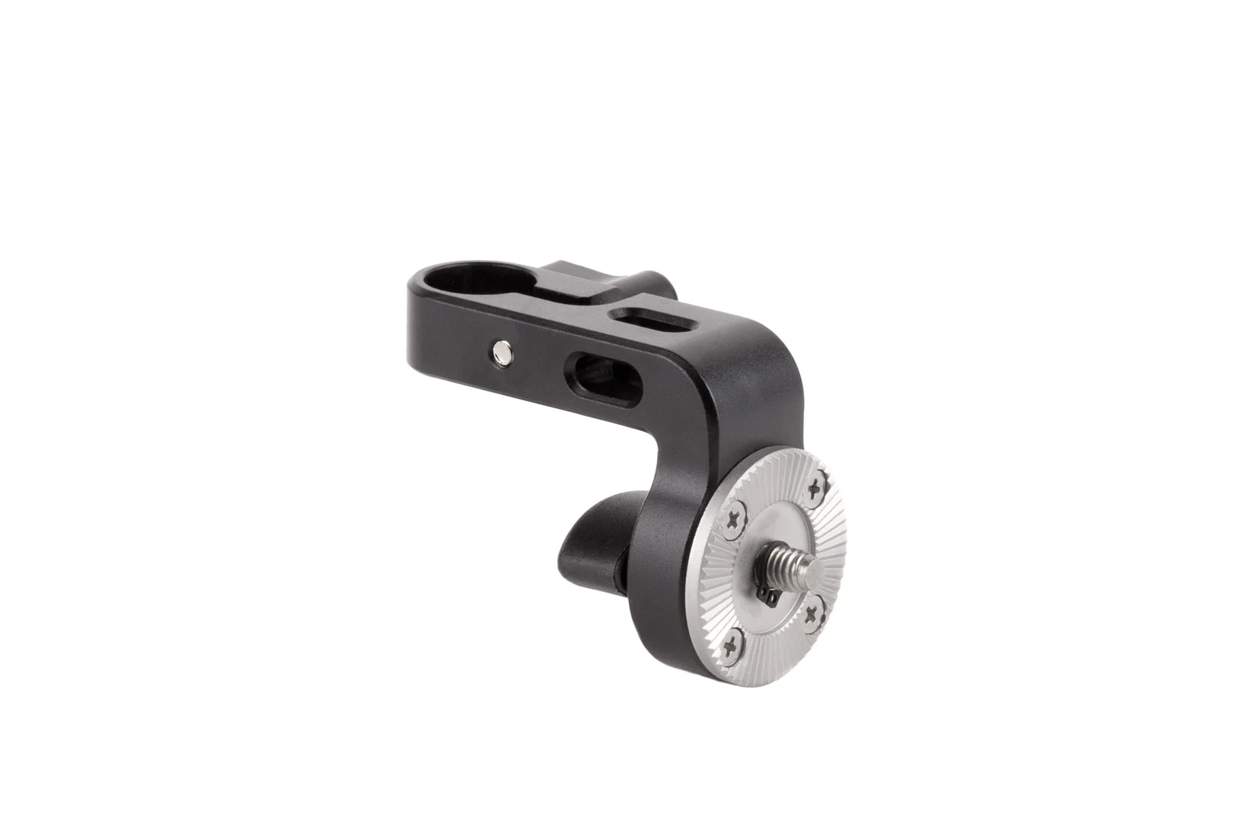 Male ARRI Rosette with M6 Thumbscrew replaces the handle assembly on a Wooden Camera Director's Monitor Cage. It allows for accessories that mount via an ARRI standard rosette to be used as one the Monitor Cage's handles. Great for wireless follow focus units!