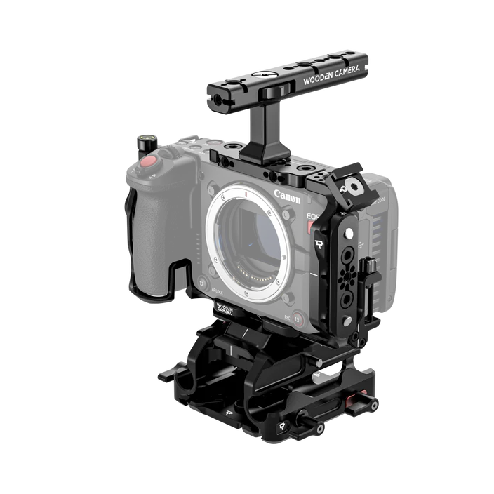 The Elite Cage System for Canon EOS C50 is a complete suite of professional accessories designed to maximize the camera’s functionality, flexibility, and on-set efficiency. Building upon the Core Kit, this system includes baseplate and ARCA adapter components for tripod-mounted configurations.