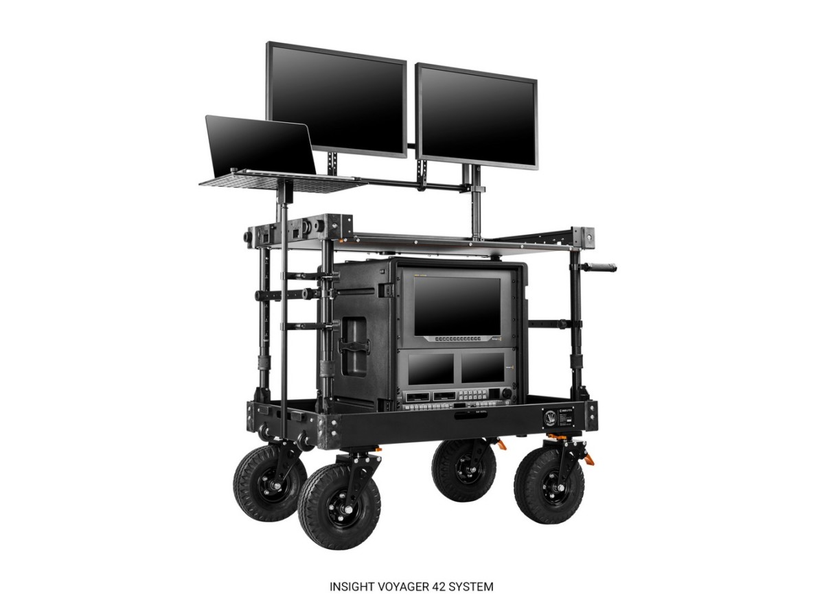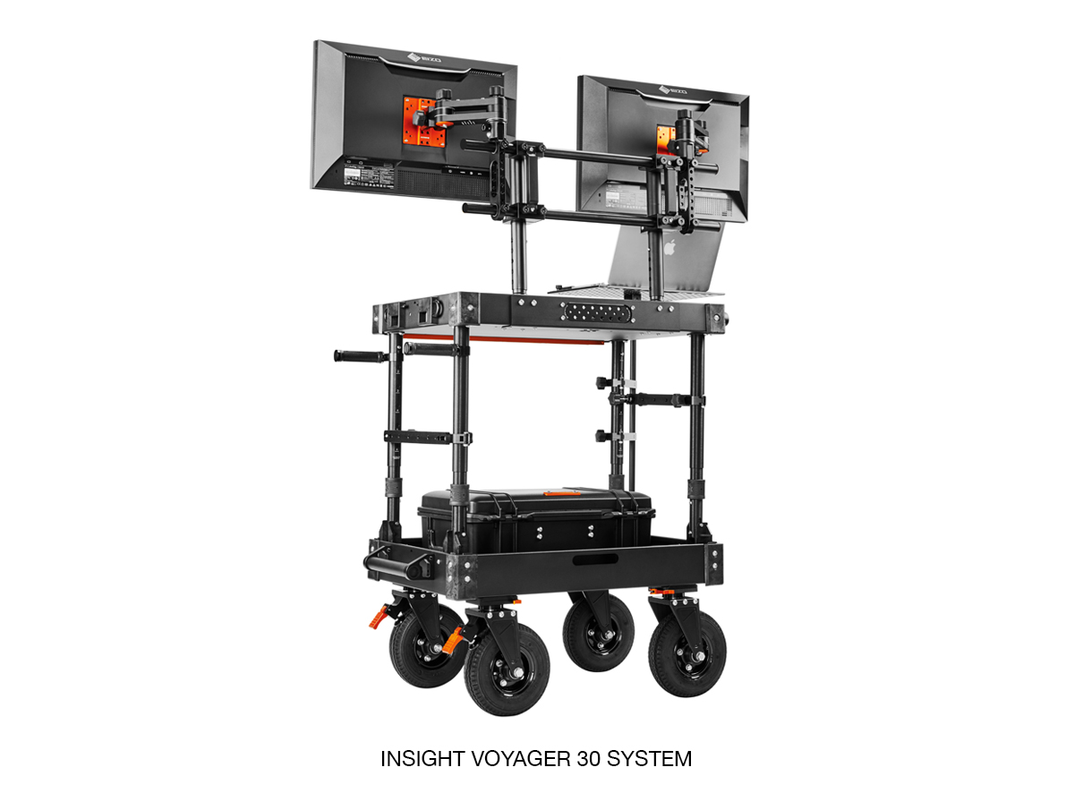 The Insight Monitor Mounting System allows for simultaneous support of multiple monitors and provides a diverse range of mounting options. With its dual cross tubes, the system ensures stability and strength, enabling it to accommodate multiple monitors and withstand the rigors of on-set use. Additionally, the Insight System is designed for easy transportation and quick setup.