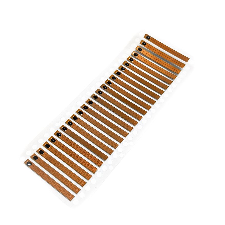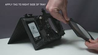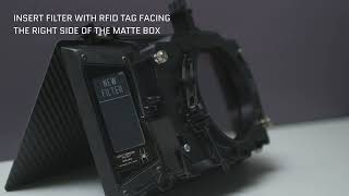 A sheet of 25 RFID tags that adhere to the edge of a filter. These tags will also work with rota-pola or other metal trays if the chip (the black dot) is placed so that it’s just above the edge of the matte box frame.