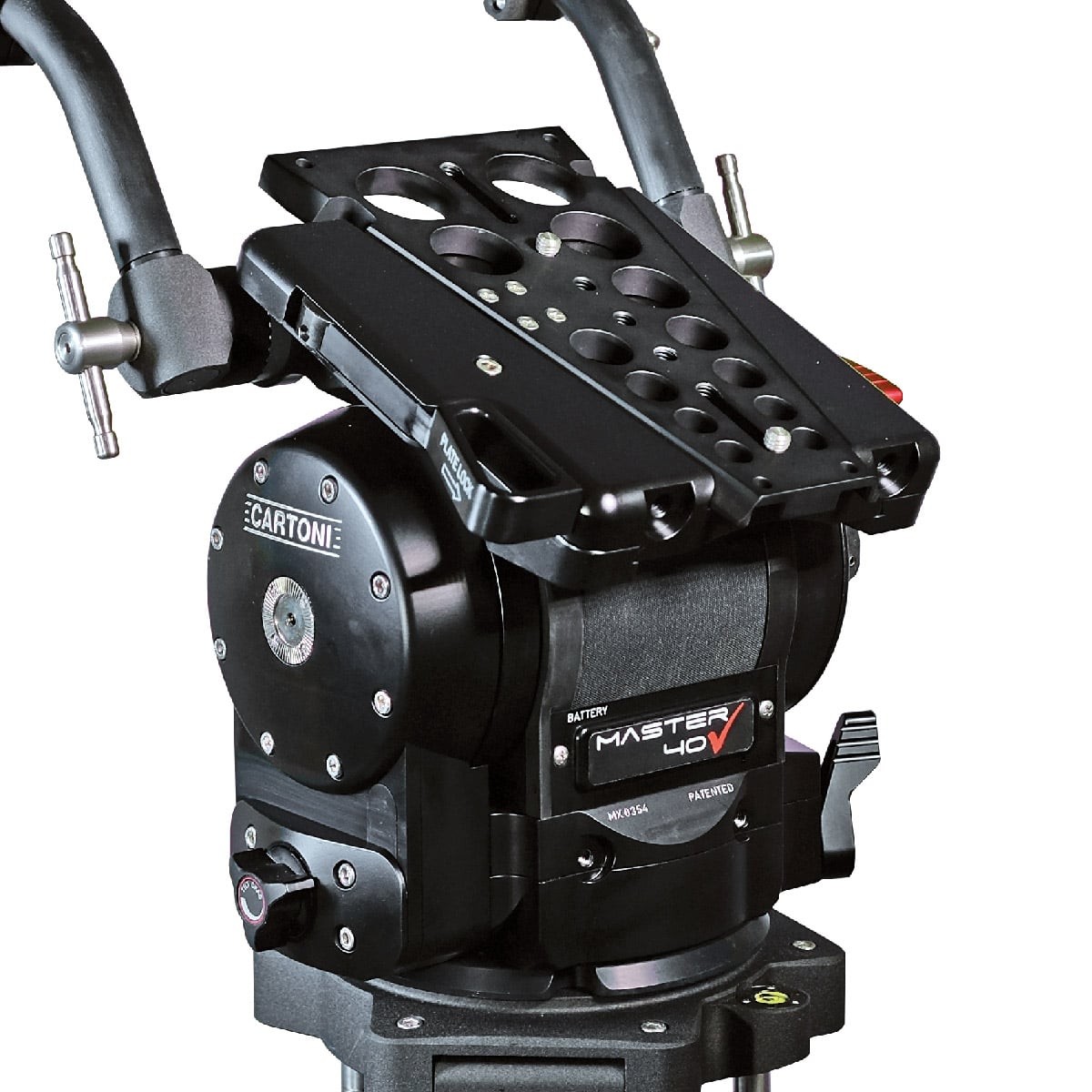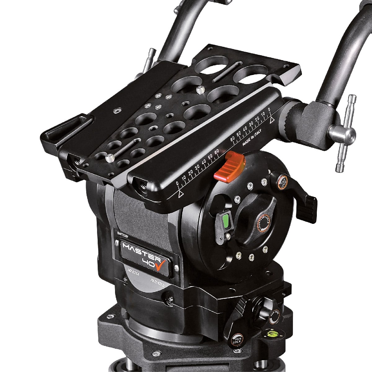 The Master 40 fluid head is the ideal support for heavy duty broadcast camera packages, fully decked with boxed lenses and viewfinder, with a capacity up to 52 kg (115 lbs)