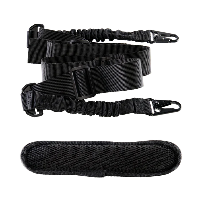 The durable nylon sling (47"-80") includes elastic cords and a padded shoulder strap. The steel QD swing swivel offers one-handed attachment/detachment and 360° rotation for maximum flexibility.