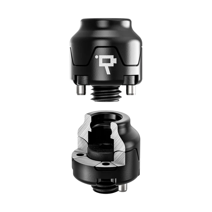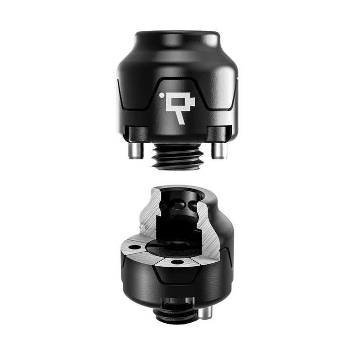 The fixed QD mount features an 8-slot biconvex detent design, preventing rotation, while the 360° mount allows free-flowing movement. Both receivers install with a 3/16" hex tool. This creates a stable, non-rotating rear camera base and a freely adjustable front mount for tracking moving subjects.