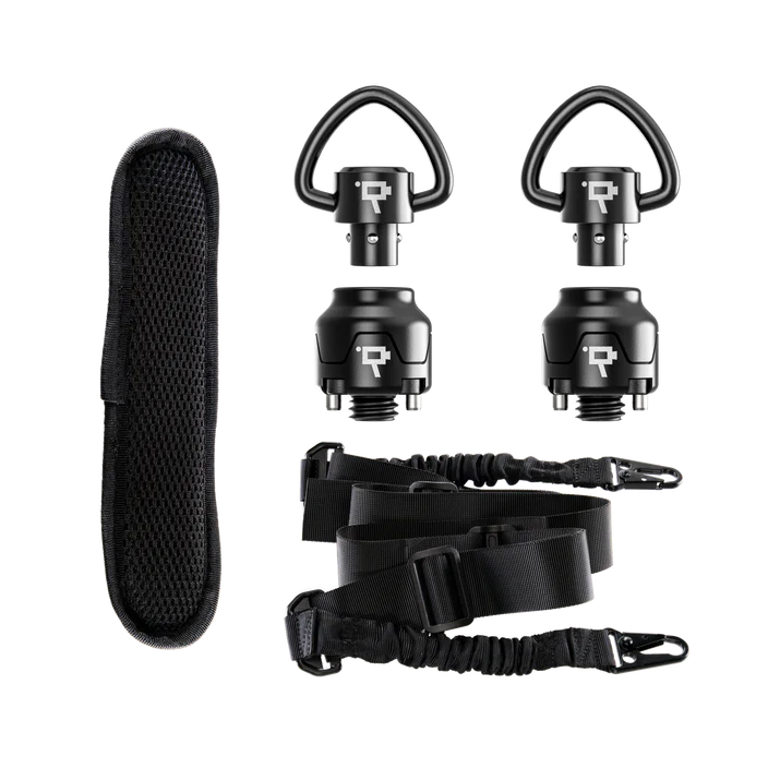 Each kit combines a fixed 8-position QD mount and a 360° rotating QD mount with QD Swing Swivels, Bungee Strap, and Shoulder Pad for enhanced control and flexibility with â…œ”-16 or ¼”-20 compatible cameras and devices. The ¼”-20 kit has an option for a dual receiver that utilizes 2 screws for a more secure connection.