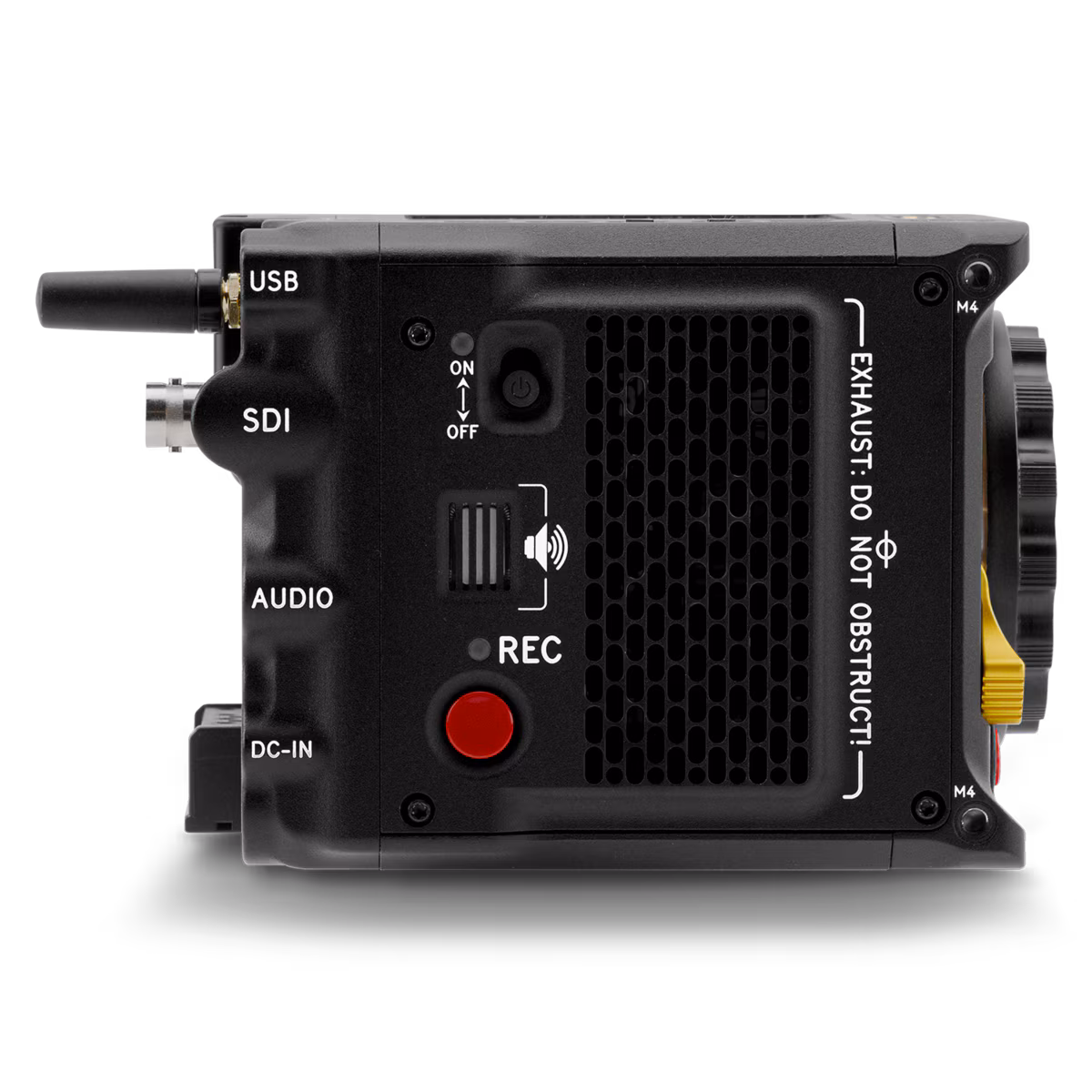 12G SDI, full sized DC-IN, USB Type-C, and a phantom powered locking audio connector further enables KOMODO-X to seamlessly integrate into any professional workflow. KOMODO-X is compatible with DSMC3™ RED® 5-Pin to Single 3.5mm Adapter to support existing KOMODO microphones, or the DSMC3™ RED® 5-Pin to Dual XLR Adapter for general purpose XLR microphones.