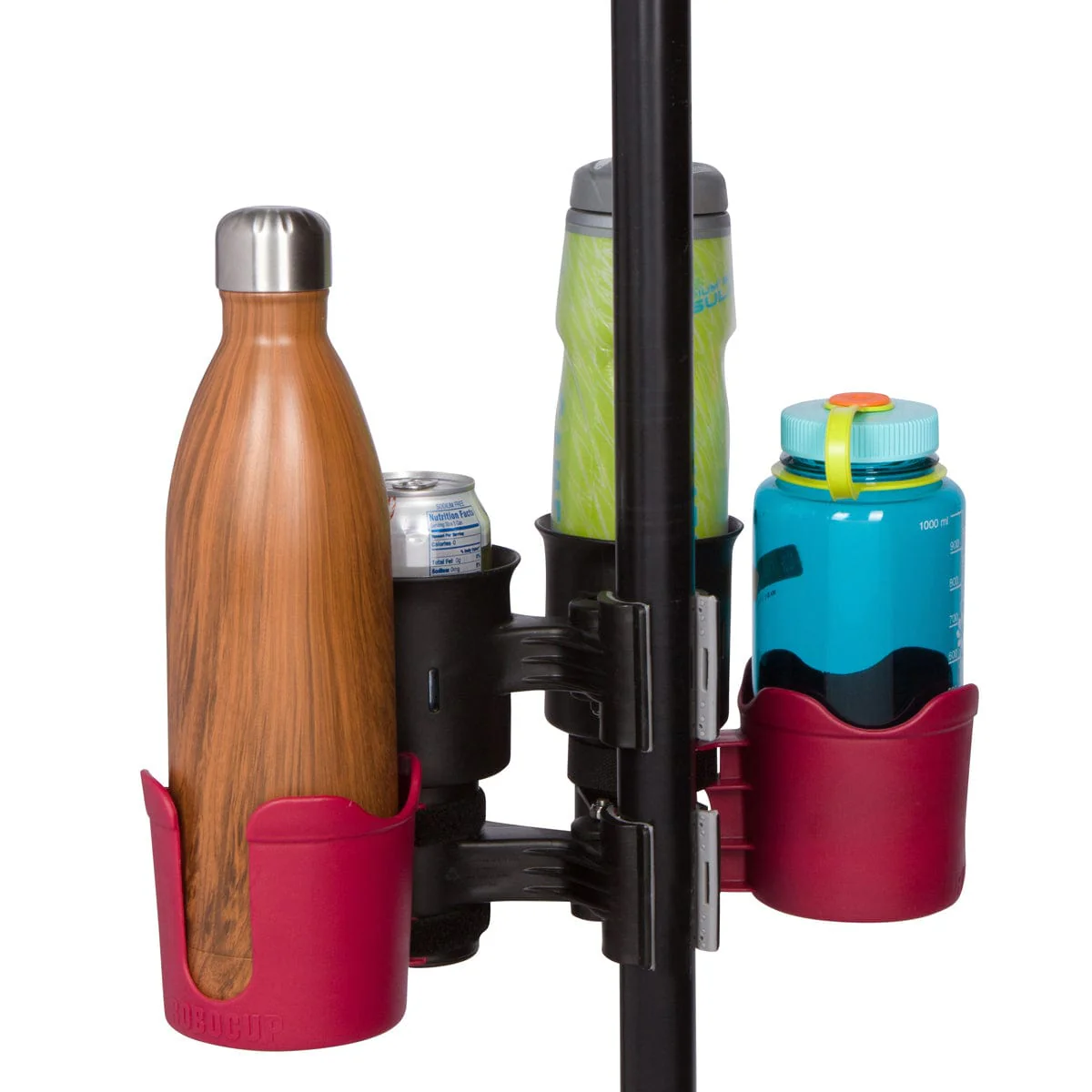 Designed for large drinks up to a 3.75”/95mm in diameter including cups, mugs, glasses, koozies, tumblers and more.  Perfect for Nalgene, Hydroflask, Yeti, RTIC, Contigo, Thermos and Camelbak.
