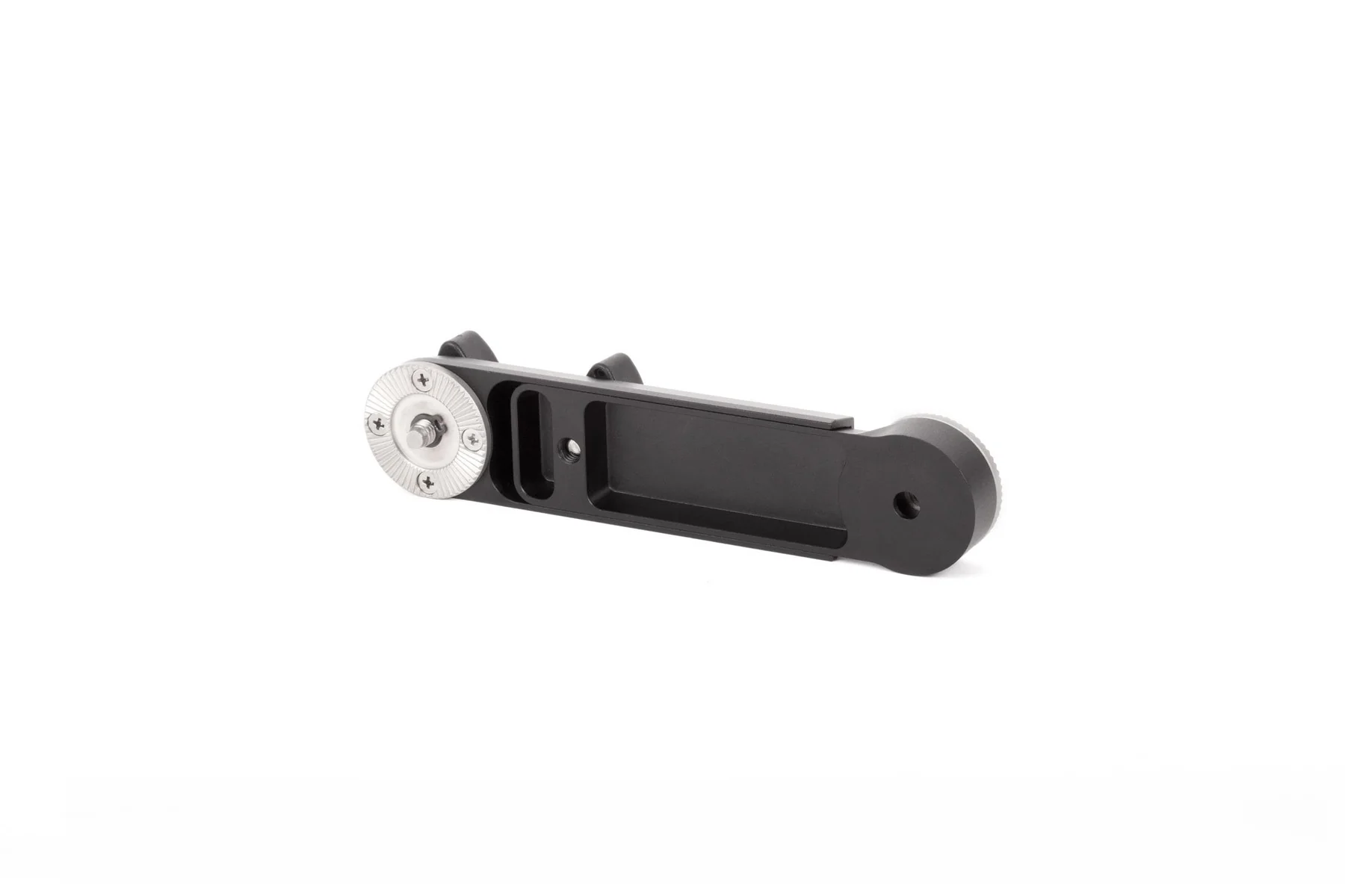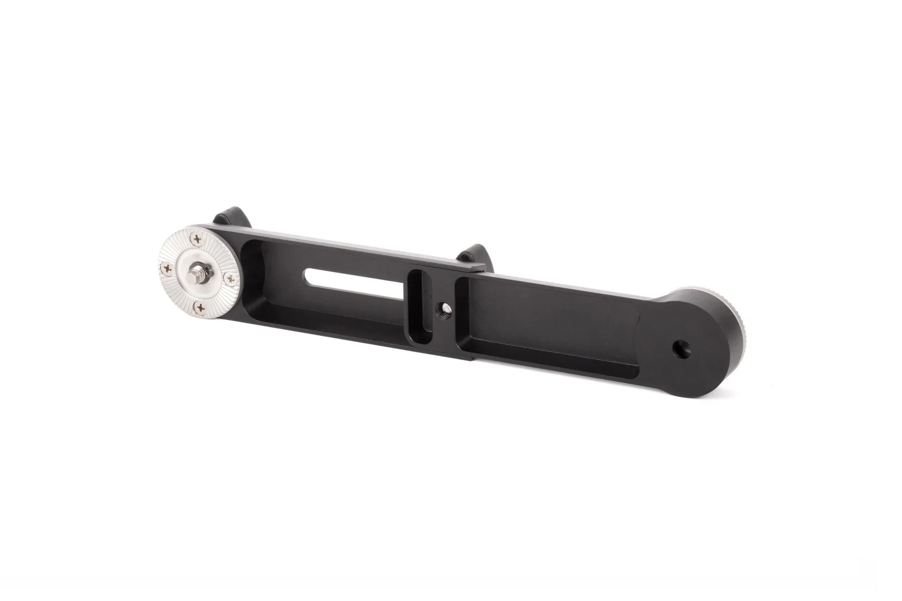 Rosette extension arm with ARRI style rosettes on each end that telescope from 4.5 in (11.5cm) to 6.7 inches (17cm). For use with Wooden Camera Crossbar, Rosette Handle, and other ARRI compatible rosette equipment.