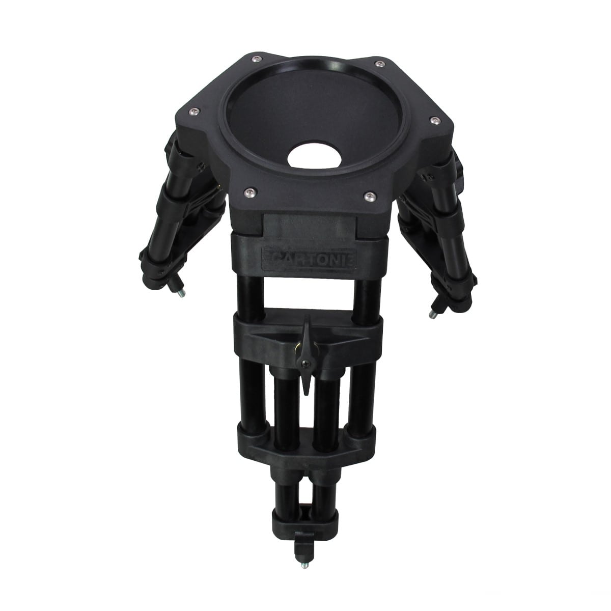 Cartoni engineers designed the aluminum alloy Mitchell base, to flawlessly integrate the leg castings, thus forming a torsion-free structure.