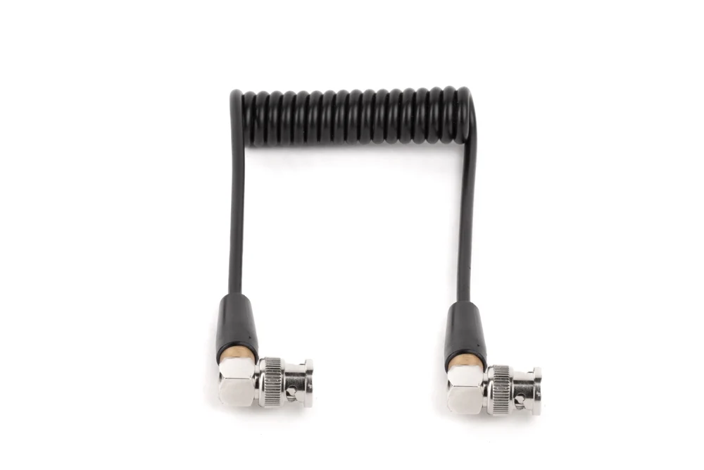 Coiled HD-SDI - BNC to BNC cable. Extends from 10" resting length to 20" to allow mobility and adjusting of on board monitors, wireless systems, and recorders. Ideal for Teradek wireless systems and Steadicam configurations. Excellent for studio configurations as well as patching. Also available in 20" length. RoHS Compliant. 3G-SDI Rated.