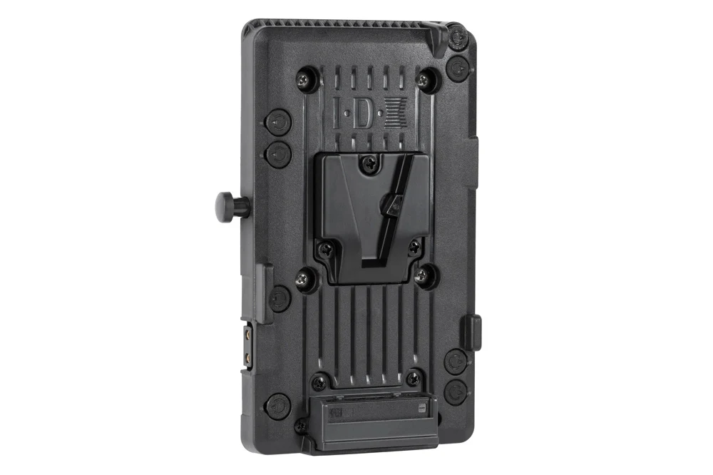 Wooden Camera brand V-Mount plate utilizing an IDX V-Mount. Plate provides unregulated 12V power (12-16V depending on battery connected) through 2x D-Taps on plate.