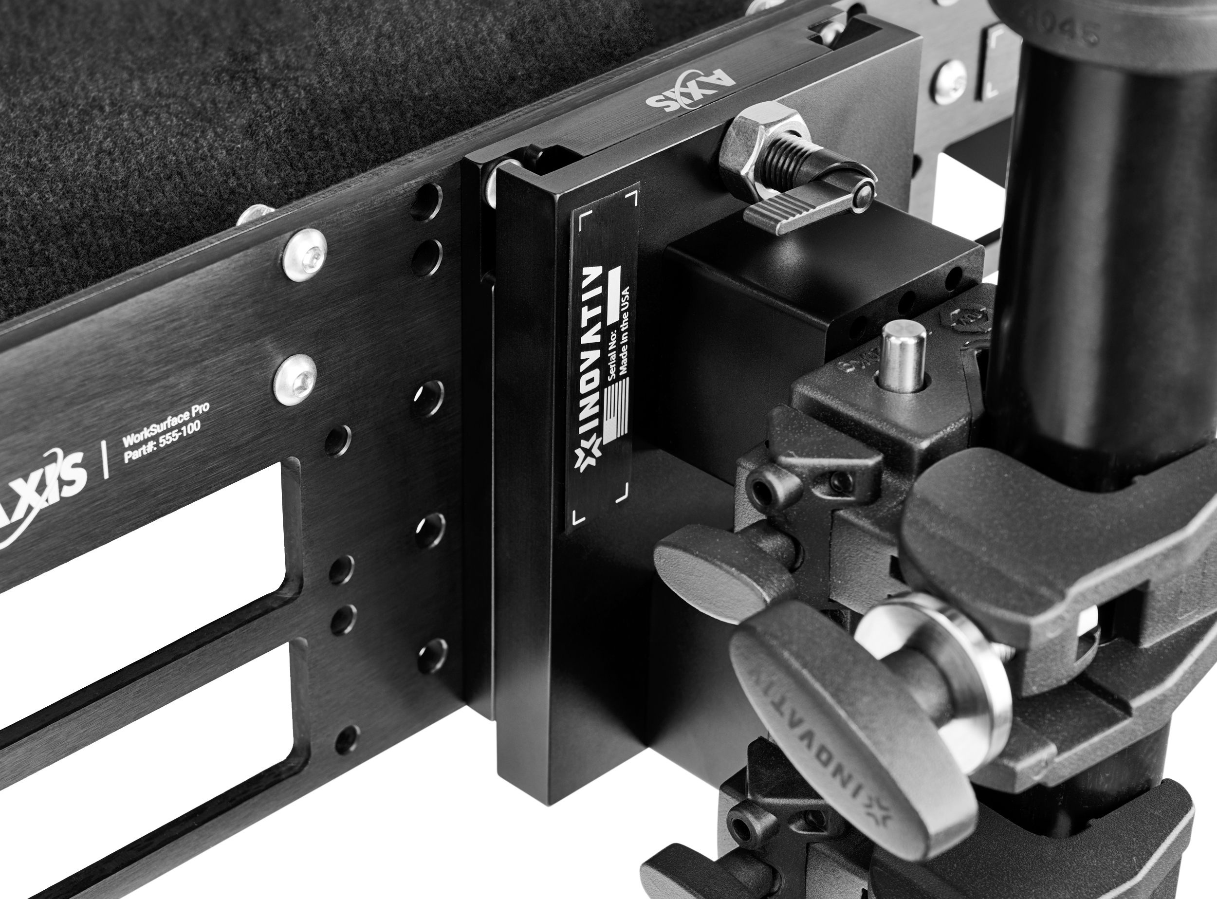 Utilizing the patented vDrop System, this innovative workstation can be securely mounted to any post with a diameter of up to 2 in. Whether attached to the AXIS Stand or a compatible post, the WorkSurface Pro provides a reliable platform for your work.